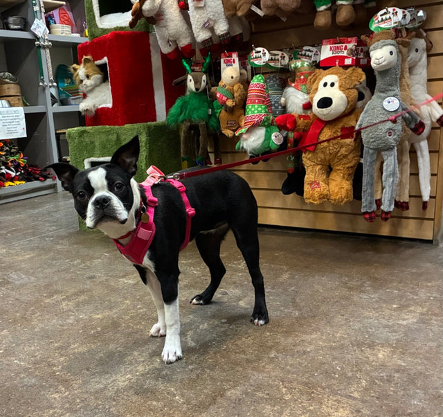 During her fitting, Pip tried a few different harness types. This step-in style offered the best combination of comfort, fit, and control, earning her seal of approval.